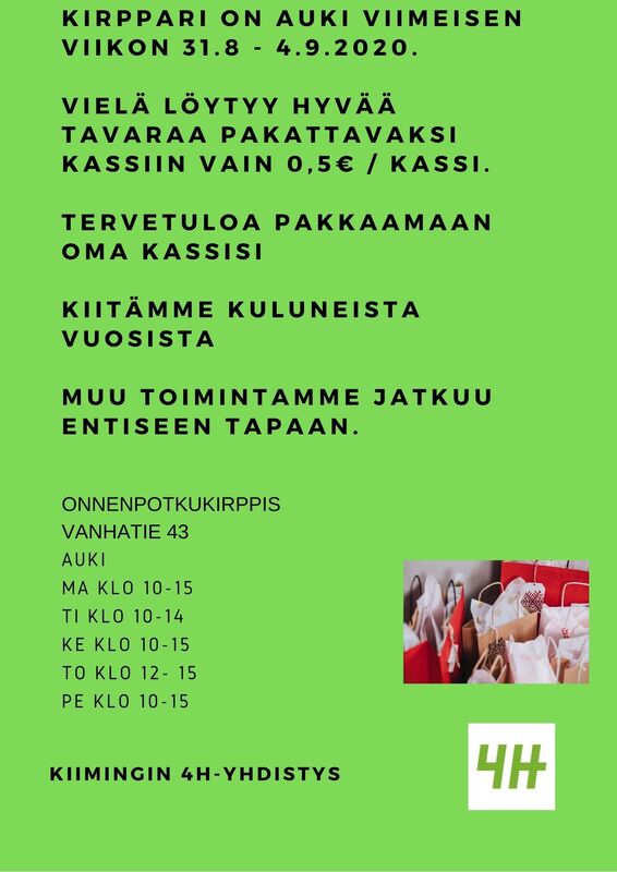 Viimeinen viikko kirpparilla alkaa 31.8.2020